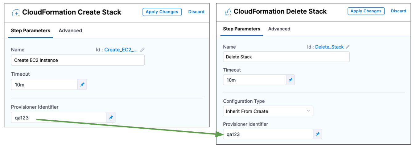 - Inherit from Create: removes the resources defined in the Harness Create Stack step that you identify using the same Provisioner Identifier.
