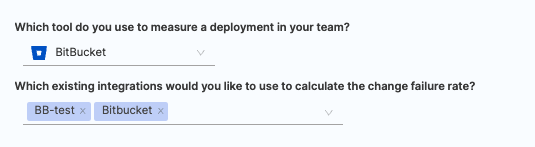 - Choose BitBucket / BitBucker Server as the tool that you use to measure change failure rate in your team.